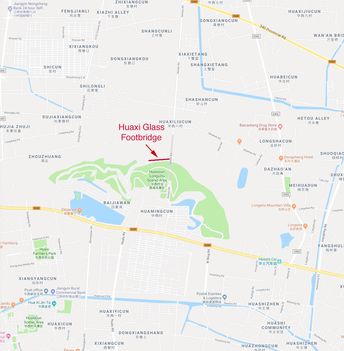 Huaxi Glass Footbridge location map.