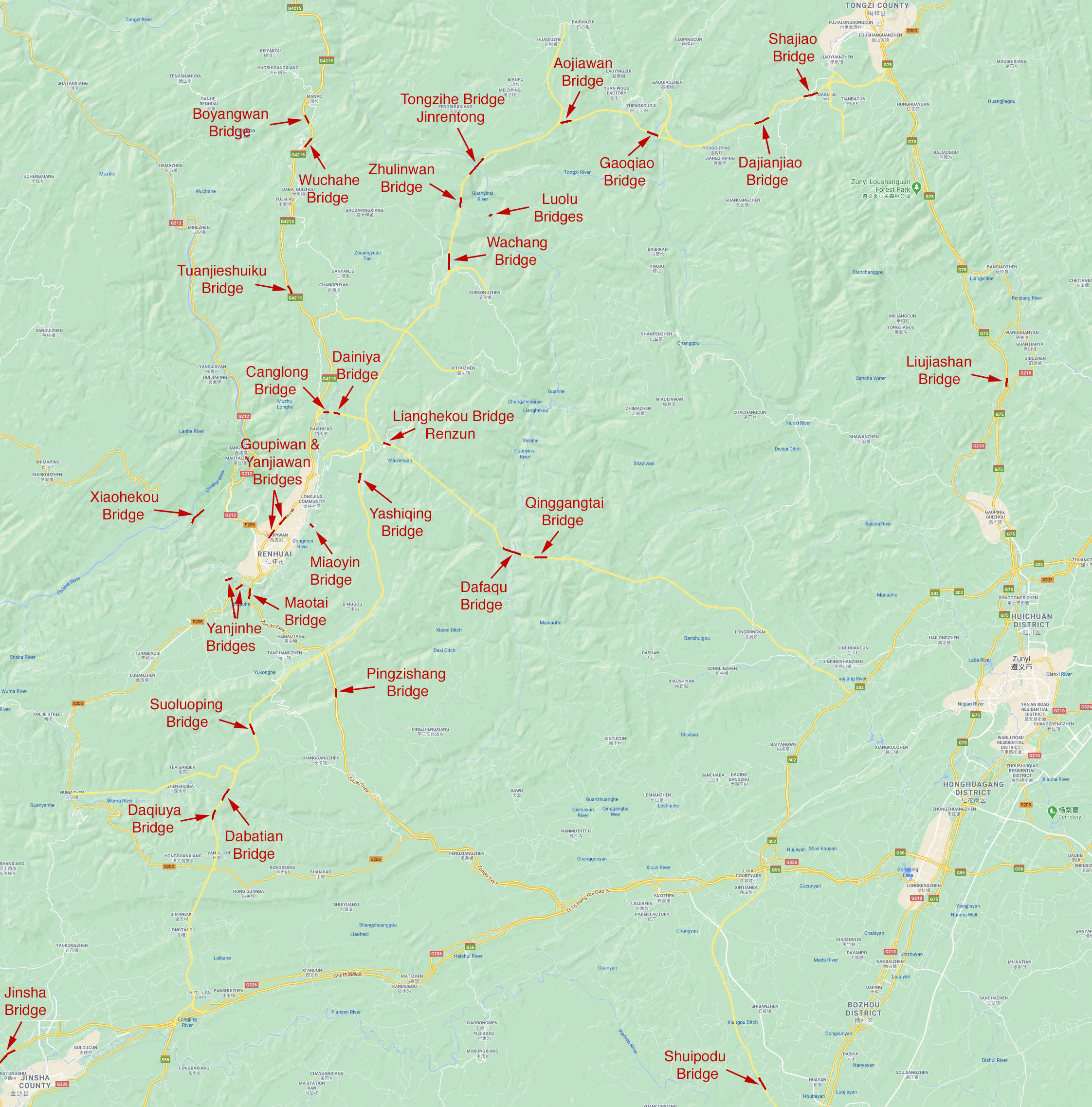 Jinsha Renhuai Expressway Map.